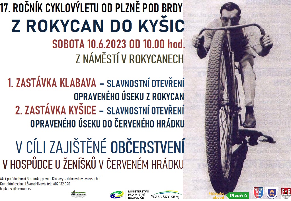 Zveme všechny na tradiční cyklovýlet Od Plzně pod Brdy, tentokrát na trase Rokycany - Kyšice. Akce se uskuteční 10.6. a více informací naleznete v příloze.